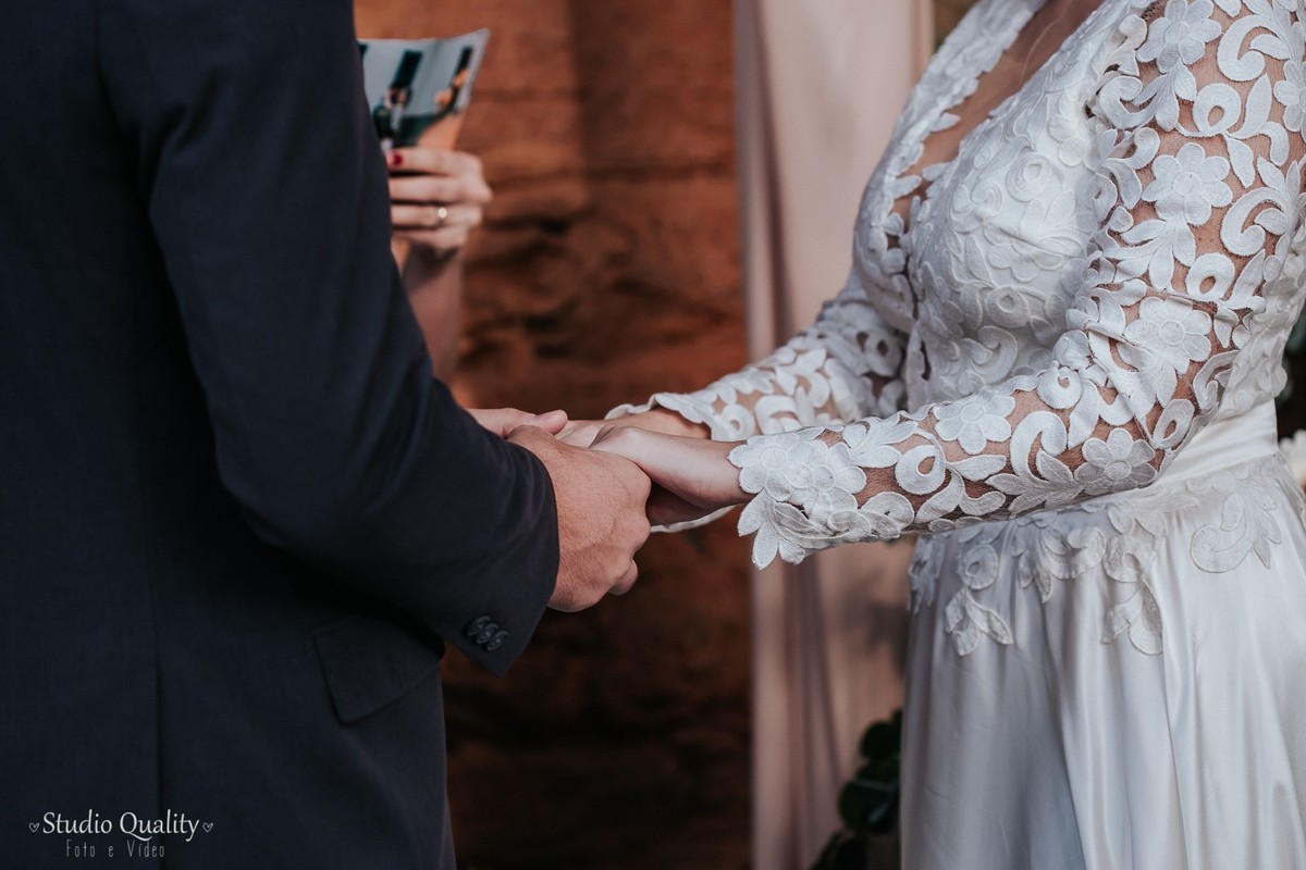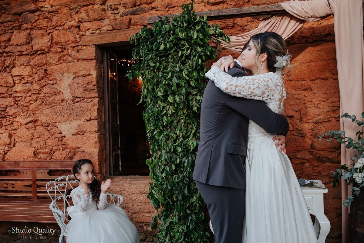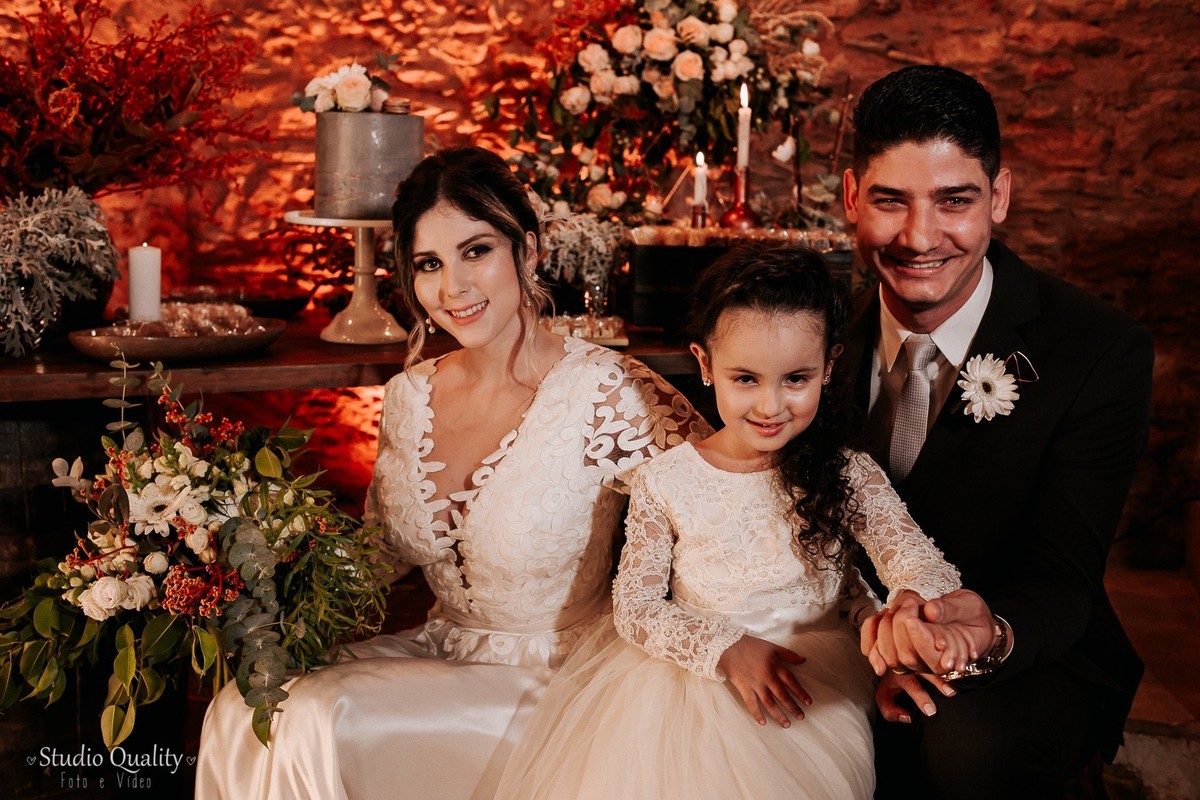 Mayara e Dheysson já são casados no civil e já moram juntos. Eles tinham um sonho e optaram por fazer uma celebração mais íntima contando apenas com a presença de uma celebrante e a filhinha do casal.