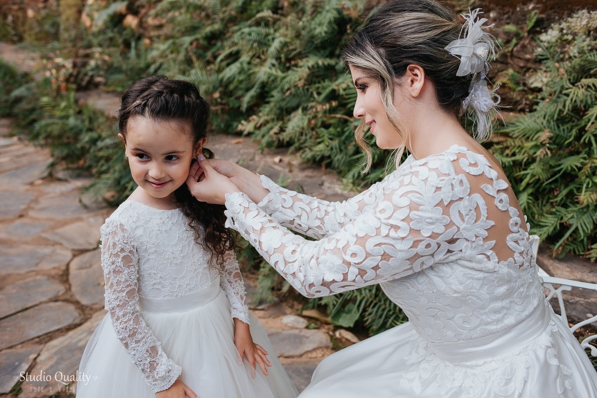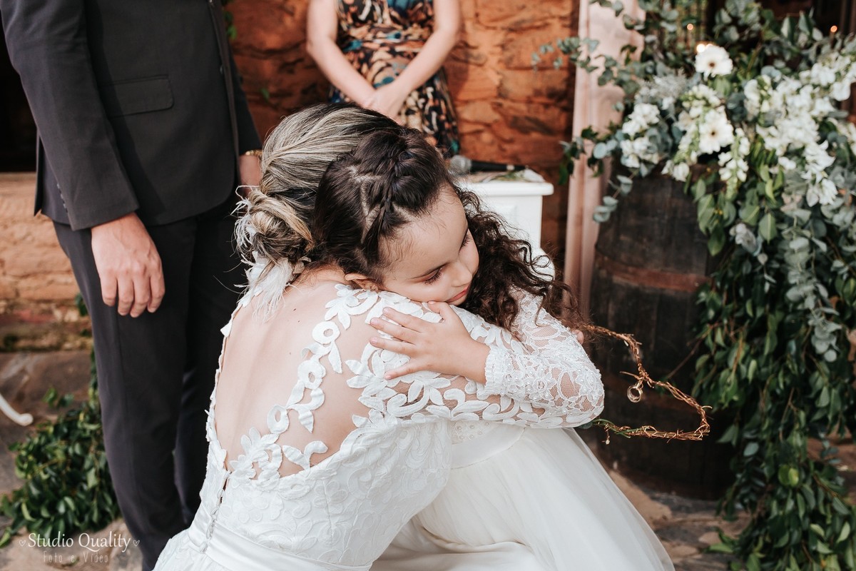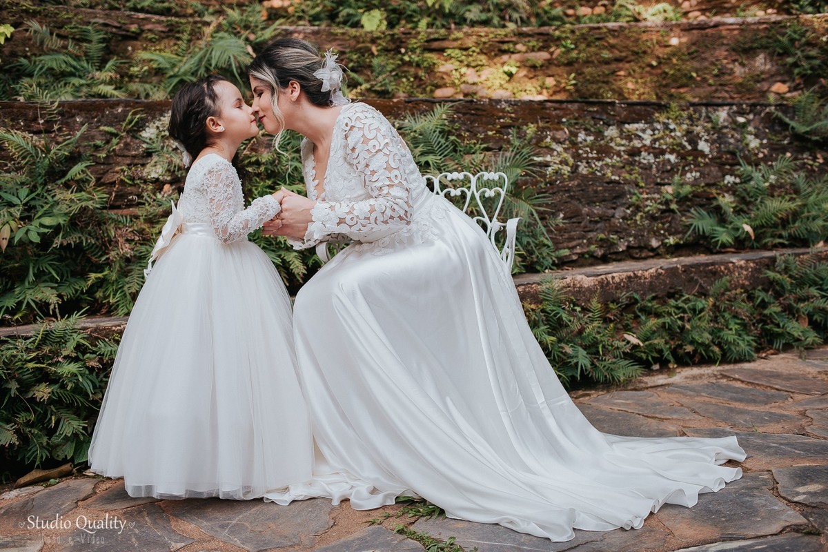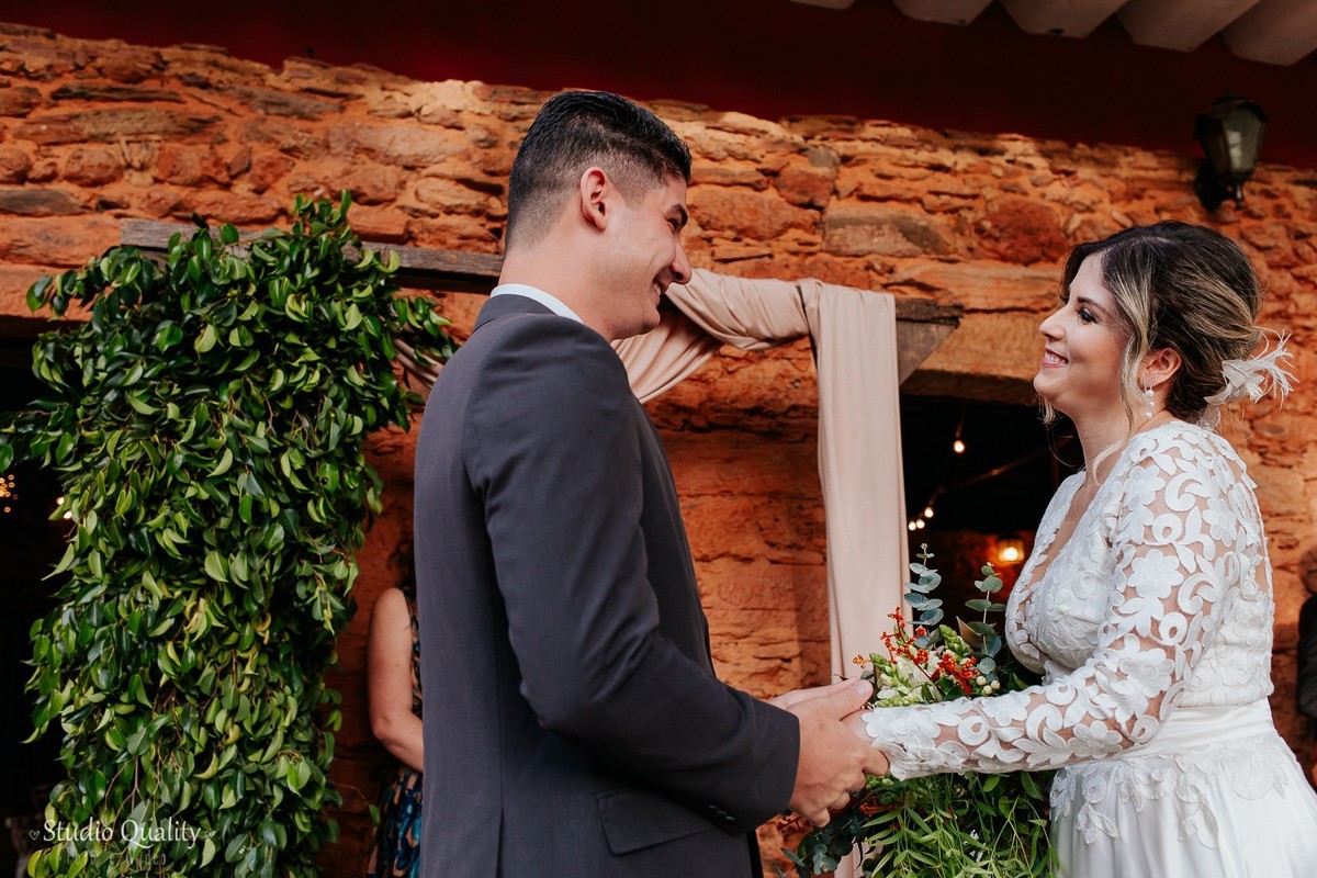 Mayara e Dheysson já são casados no civil e já moram juntos. Eles tinham um sonho e optaram por fazer uma celebração mais íntima contando apenas com a presença de uma celebrante e a filhinha do casal.