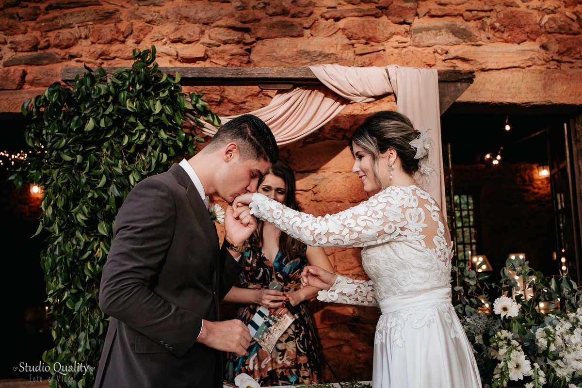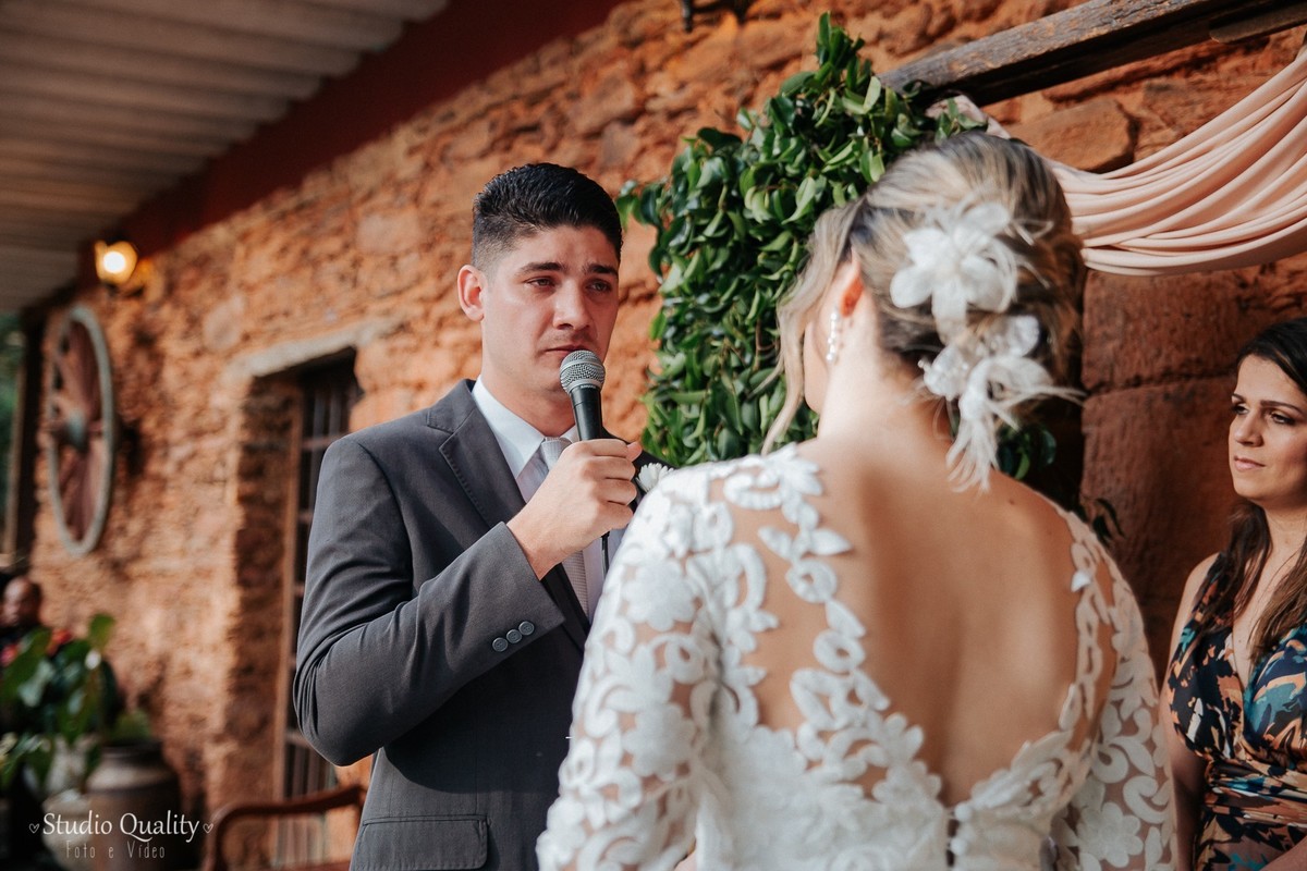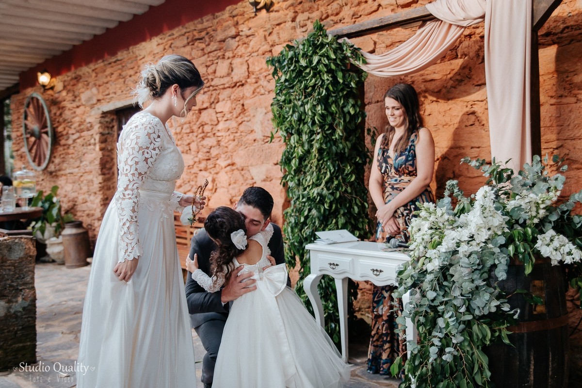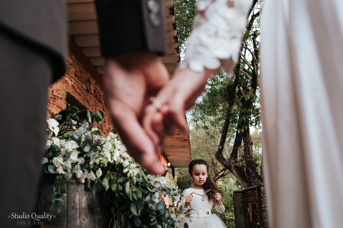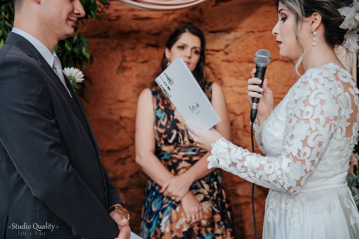 Um dos momentos mais marcantes... Os votos do noivo!!! Impossível descrever tantos sentimentos expressados em cada palavra. Já o momento fofura ficou por conta da daminha que entrou lindamente com as alianças dos pais. Mayara encerrou a cerimônia com suas sábias palavras de gratidão e ternura.